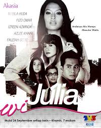 Menyaksikan cerita ini JULIA di TV3 setiap Isnin hingga Khamis jam 7mlm - 8 mlm telah menarik dan memainkan emosi seperti perjalanan drama itu. THUMBS UP to Nabila Huda, Fizo Omar, Fauziah Ghaus, Izreen Azminda dan Azlee Khairi yang telah membawa watak-watak yang diberikan dengan penuh berkesan dan terkesan. Especially kepada saya yang ratu kalau bab-bab cerita melayu nih...Jom saya sempat copy sinopsis ini dari pautan BUDIEY.COM untuk korang yang follow drama nih setiap petang.....